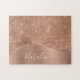 Easily personalise this rose gold brushed metal and glamourous faux glitter patterned jigsaw puzzle with your own custom name.