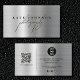 A beautiful design incorporating your business logo and your QR Code. This elegant metallic silver metal look signature script business card is ideal for all types of businesses. A simple and professional way to introduce your business. Social media icons included in the design of this business card for you to use. Personalise your details to create your own unique business card.