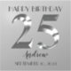 Happy 25th birthday. 25 years. Silver metallic label.