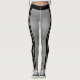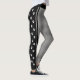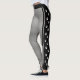 Simulated metallic silver grey womens leggings with a black side stripe with white paw prints. Trendy, modern training pants for jogging, running, gym, fitness workout and sports routines. Could also be used as comfy yoga pants. Great leggings for a dog walker, cat or dog dad and any pet animal owner and lover.