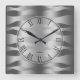 Metallic Silver Grey Wavy Zebra Stripes Pattern Square Wall Clock