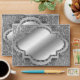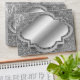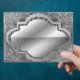 Metallic silver looking envelope with a damask background