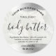Body butter labels with a silver shimmer on an iridescent marble background.