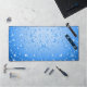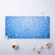 The design features cool rain droplets in a metallic sky blue colour, creating an abstract and bright appearance.