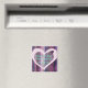 A violet heart with customisable text inside for your special occasion announcement on a purple metallic background.