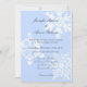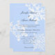 Silver metallic 110lb card stock with blue background featuring beautiful snowflake backdrops and elegant text. Impress your guests with the perfect design!