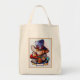 The printing came out very well, better than I had anticipated. The natural color fabric is sturdy with strong seams and comfortable handles. This tote fits easily over my shoulder. As it is filled, the bottom flattens out--very cool! I would buy this product again. This grocery tote holds a lot of groceries! The image quality was very good. The colors were a little darker than I had expected. The darkness may have been due to printing on a natural color fabric rather than on white. The cat design is attractively centered on the tote. The spirit of the design is very lively, just as it appears on the Zazzle website.
