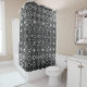 Shower curtain in a four-way metamorphosis of arabesque medallions in black and white