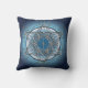 Throw Pillow designed with a silver Metatrons Cube on an enigmatic blue background.