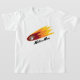 The t-shirt feels and looks great quality, a good thick cotton. It will be a little big for my son, but that means he will be able to wear it and not out grow it too soon. The print was as described on the order when personalised. True size, shape and colour T-shirt- thanks.
