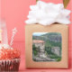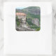 Square sticker with an image of the Meteora monastery.