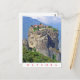 A beautiful view of one of the monasteries on the rocks in Meteora in Greece printed on a postcard.
