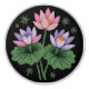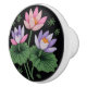 This decorative knob showcases a Métis beadwork–inspired design of lotus blossoms in soft pinks and purples, accented with golden highlights. Broad green leaves and star-like accents surround the flowers, all set against a deep black background for vivid contrast. The design captures the intricate beauty of traditional bead artistry, reimagined as a functional detail for your home.