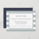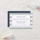 Designed to coordinate with our Metro Stripe wedding and event invitations in greyed jade, this simple and chic reception information card features a background of wide horizontal stripes in dusty jade green and white, with your wedding reception details in a mix of modern block and traditional script typography styles in rich midnight blue. Add your key details like reception timing, location and transportation or parking using the fields provided.