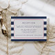 Designed to coordinate with our preppy chic pink and navy Metro Stripe wedding and event invitations, this simple and chic reception information card features a background of wide horizontal stripes in classic navy blue and white, with your wedding reception details in a mix of modern block and traditional script typography styles in rich midnight blue. A thin border in vibrant bright fuchsia pink adds a contrasting pop of colour. Add your key details like reception timing, location and transportation or parking using the fields provided.