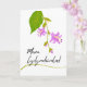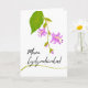 Mewn Cydymdeimlad. Hosta blooms and a leaf decorate the cover of this sympathy card written in Welsh. Blank inside for your condolences. Paper greeting card with an illustration of a Hosta plant stem with variegated leaf. Art, image, and verse copyright © Shoaff Ballanger Studios, 2025.