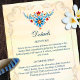 The soft cream background highlights the detailed florals and aqua tones, offering a refined space to include additional information such as reception details, accommodations, or wedding website links. This versatile enclosure card complements the entire suite while elevating your stationery with cultural charm and sophisticated artistry. Whether paired with invitations, save the date cards, or envelopes, it ensures every detail of your wedding feels cohesive and beautifully planned.