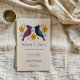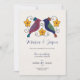 This Mexican Birds Floral Magenta Navy Blue Wedding Invitation vibrant design showcases two stylised birds facing each other, one in deep magenta with purple accents and the other in rich navy blue with green wings, both adorned with contrasting tail feathers and head crests. Between and around the birds are bright yellow-orange flowers with swirling black stems, creating a symmetrical and decorative floral frame. Set against a soft off-white textured background, the illustration exudes a folkloric, romantic charm—perfect for invitations or celebratory stationery.