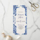 This Mexican Blue Floral Elegant Flowers Fiesta Wedding Program design features an ornate hand-painted border in rich shades of blue, inspired by traditional porcelain and floral motifs. The swirling patterns intertwine with delicate blossoms and leaves, creating a sense of elegance and flow along the vertical edges. The centre is left as a soft, textured cream background, providing a refined space for text or artwork while allowing the decorative frame to stand out beautifully.