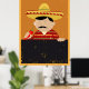 Illustration of a cartoon mexican or south-american chef cook holding red hot chilli pepper