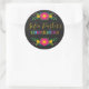 Mexican Quinceañera Fiesta round sticker with colourful cheerful flowers on a dark grey background.