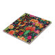 Celebrate the soul of Mexican folk art with this stunning ceramic tile featuring an explosion of hand-drawn flowers, birds, hearts, and cacti in rich, vibrant colours against a deep black background. The scene is alive with symbolic beauty: majestic birds, one spreading its wings in a fiery display, the other perched serenely, represent freedom and spirit; roses bloom from cactus pads, blending love and resilience; and whimsical pink and red hearts are scattered like confetti among marigolds, dahlias, and hibiscus. Perfect for elevating any space, this 4.25" x 4.25" full-colour tile adds a bold folkloric touch as a backsplash centerpiece, a trivet on your festive table, or a standout gift for holidays, weddings, or housewarmings. Crafted from white ceramic and printed edge to edge in radiant detail, it’s an eye-catching piece of useable art, functional and expressive. Indoor use only; avoid direct sunlight to preserve its saturated brilliance.