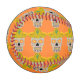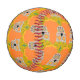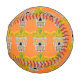 This awesome baseball features a graphic design image of a Mexican Day of the Dead (Dia de los Muertos) inspired skull. The skull is a pale grey colour and is wearing a yellow sombrero. It has gold teeth and Mexican Sunflowers, also called Tithonias< instead of eyes. The sombrero has a cactus on it and is covered in pretty swirl patterns and red and green Chilli peppers. The skull itself is covered in pretty coloured flowers of different types.