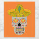 This awesome set of wine labels features a graphic design image of a Mexican Day of the Dead (Dia de los Muertos) inspired skull. The skull is a pale grey colour and is wearing a yellow sombrero. It has gold teeth and Mexican Sunflowers, also called Tithonias< instead of eyes. The sombrero has a cactus on it and is covered in pretty swirl patterns and red and green Chilli peppers. The skull itself is covered in pretty coloured flowers of different types.