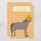This awesome Birthday Party invite features a pale brown donkey with a dark brown mane and tail. The Donkey is ready to celebrate the Day of the Dead, Dia de los Muertos. The Donkey is wearing a sombrero covered in red and green stars, carrots, colourful swirls, cherries and red and green chillies. There is a flower with orange petals and a yellow centre in the middle of the hat, called a Tithonia, or Mexican sunflower.