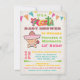 Cute and colourful Mexican Fiesta Girl Baby shower. Features a cute little baby with maraca rattle and sombrero, fun fonts, banner, all on an antique linen background.