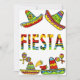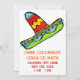 Colourful Mexican Fiesta Cinco de Mayo Invitations with colourful sombreros, peppers, and maracas and the word "Fiesta" in big bold colourful lettering on the front. The backside of the invitation has another colourful sombrero and the celebration details.