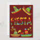 Colourful Mexican Fiesta Cinco de Mayo Invitations with colourful sombreros, peppers, and maracas and the word "Fiesta" in big bold colourful lettering on the front. The backside of the invitation has another colourful sombrero and the celebration details.