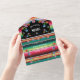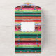 Mexcian Fiesta all in one Wedding invitations that include the wedding info and RSVP postcard that your guests tear off and and send. Envelopes are not needed. These feature hand drawn embroidery flowers and a striped aztec Serape Rug background in bright colours. Great for a Mexican, fiesta, Southwestern or Boho Wedding. Matching items on this one! Illustrations by McBooboos