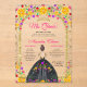 Mexican Fiesta Floral Princess Gold Quinceanera Acrylic Invitations