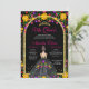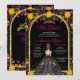 Mexican Fiesta Floral Princess Gold Quinceanera Invitation