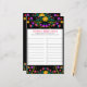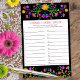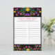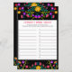 Answer sheet with Mexican Fiesta Flower design personalised to suit your event, such as bridal shower, baby shower, couples shower. Colourful floral design with folk art style flowers in pink purple red and yellow. Perfect to use with any question or guessing games at your wedding or bridal shower with numbered lines for your guests to add up to 20 answers.