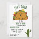 Mexican fiesta let's taco 'bout a baby Baby Shower Invitation. With a happy fun pregnant taco and a cute cactus on the front. And a Mexican pattern on the back with taco's, nacho, lime, cactus and coloured pepers. Original design.
