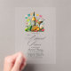 Celebrate in style with this festive transparent acrylic rehearsal dinner invitation featuring a lively Mexican fiesta theme. Complete with colourful papel picado, a tequila bottle, margaritas, tacos, and fresh limes, this design perfectly captures the spirit of a fun and vibrant pre-wedding celebration. Fully customisable, it’s an unforgettable way to invite your guests to the festivities.