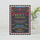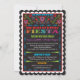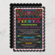 Mexican Fiesta Wedding Announcement Invitation with scalloped edge. Super cute and colourful for the couple who's wedding has a south of the boarder, Mexican feel, near a Mexican holiday, a post wedding or destination wedding. Inspired by lapel picado banners this invitation features decorative hearts and flowers and Aztec designs and banners in bright colours all on a black background. Hand drawn illustration my McBooboo.