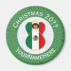 Round magnet for Christmas decor featuring an angel dressed in the flag of Mexico. The angel is found inside a white fractal of squiggly squares with a background of green squiggly squares. Add your own text, if you wish. Personalise with a name and customise with the year. Fun stocking stuffer. Honour your Mexican heritage during the holiday season.