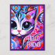 Mexican Folk Art Abstract Kitty Cat Birthday Postcard