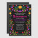 Mexican Folk Art Black Colourful Floral Quinceaner Magnetic Invitation