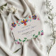 This Mexican Folk Art Colourful Floral Fiesta Wedding Save the Date design features a vibrant and colourful Mexican folk art style, with bright florals and a central bird motif at the top. The playful arrangement of flowers and leaves frames the design beautifully, creating a lively and festive atmosphere. The mix of bold colours like orange, pink, green, and purple adds a joyful, celebratory tone, making it perfect for a wedding invitation.