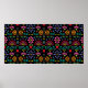 Mexican folk art seamless pattern, colourful design with flowers wallpaper inspired by traditional designs from Mexico. Happy flowers and abstract shapes ornament, retro background