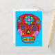 Mexican folk art sugar skull postcard. Background colour can be customised.