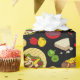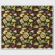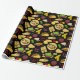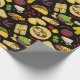 Colourful Mexican food patterned wrapping paper, featuring a variety of traditional dishes from Mexico including tacos, burritos, enchiladas, refried beans, empanadas, fajitas, tamales and more