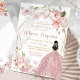 Mexican Gold Pink Floral Princess Quinceañera Invitation