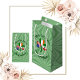 Personalised small gift bag featuring a shamrock has a different flag in each leaf representing the Mexican, Irish and American (USA) cultures. Above, the words THREE CULTURES. Below, ONE YOURNAME. Add your name, or someone else's, in the appropriate place, to create a personalised gift bag. Design includes the flags of Mexico, Ireland, and the United States of America. Background is green squiggly squares. Great for birthday gifts. Fun for hostess gifts for St. Patrick's Day, Cinco de Mayo, and 4th of July.
