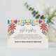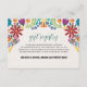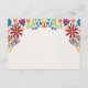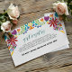 This Mexican Nuestra Boda Flowers Botanical Wedding Enclosure Card design showcases a rich and vibrant floral arrangement around the edges, with bold colours like red, orange, blue, purple, and yellow that create a festive and welcoming feel. The flowers are intricately combined with leafy patterns and small, detailed embellishments, giving the design a lively and textured look. The balance of bright, contrasting colours and the delicate, symmetrical arrangement make this an eye-catching option for a celebratory wedding stationery, especially one with a traditional or folkloric theme.