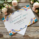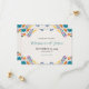 This Mexican Nuestra Boda Flowers Botanical Wedding Save the Date design showcases a rich and vibrant floral arrangement around the edges, with bold colours like red, orange, blue, purple, and yellow that create a festive and welcoming feel. The flowers are intricately combined with leafy patterns and small, detailed embellishments, giving the design a lively and textured look. The balance of bright, contrasting colours and the delicate, symmetrical arrangement make this an eye-catching option for a celebratory wedding stationery, especially one with a traditional or folkloric theme.